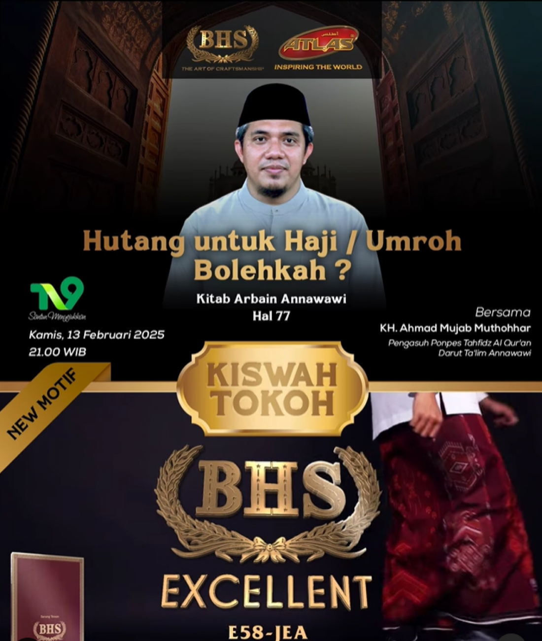 Saksikan #KiswahTokoh bersama KH. Ahmad Mujab Muthohhar (Pengasuh Ponpes Tahfidz Al-Qur’an Darut Ta’lim Annawawi). Kamis, 13 Februari 2025. Hanya di TV9 Nusantara😉
