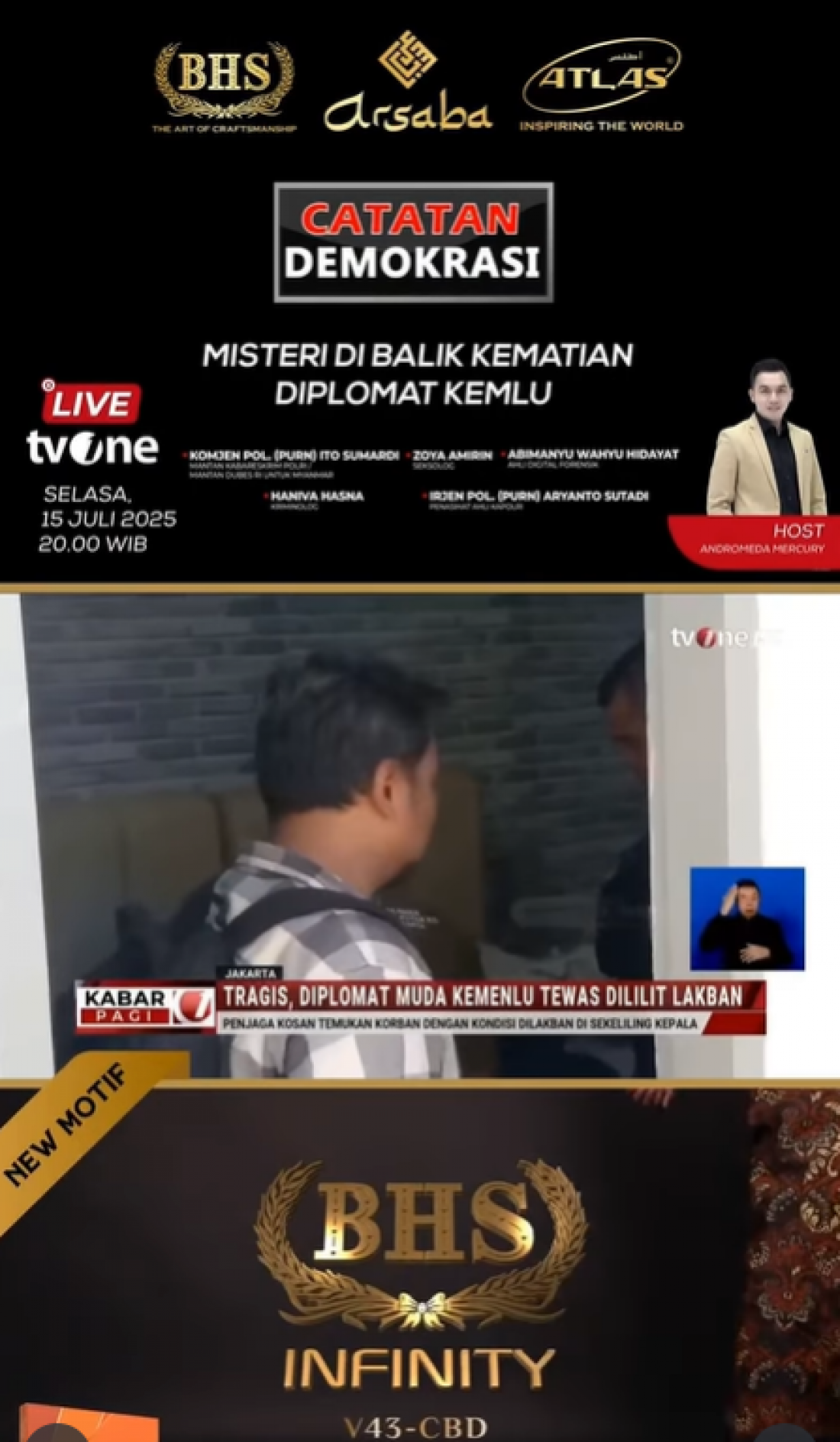 Kem*tian Diplomat muda Kemlu masih menjadi misteri. Berbagai asumsi, spekulasi, hingga teori konspirasi turut mewarnai. Penggunaan lakban sebagai alat 'pencabut nyawa' dinilai tak biasa. Apa yang sebenarnya terjadi setelah pukul 23.26 saat arya terakhir terlihat memasuki kembali kamarnya? Pertanyaan dilontarkan berulang kali. Mengapa ada detik yang hilang pada rekaman cctv saat arya kembali? Mengapa angle cctv berubah? Mengapa saat may*t ditemukan, ekspresi 2 orang yang membongkar kamar, terlihat datar? Kepolisian dituntut cepat menyelesaikan. Apakah benar ada tindak kejahatan atau sekadar kelalaian? Metode Scientific Crime Investigation pun dikedepankan. Publik menanti kasus diungkap secara terang dan transparan